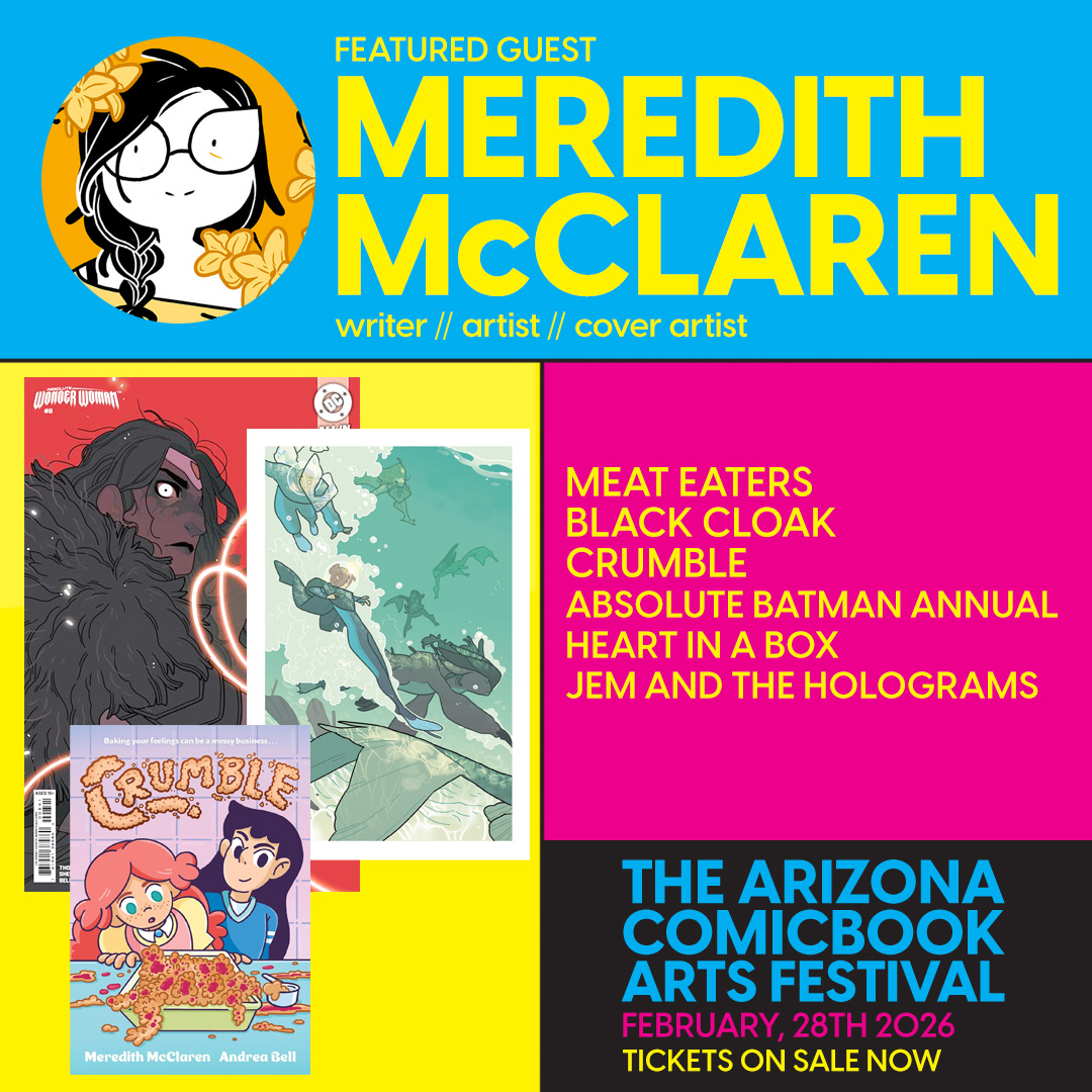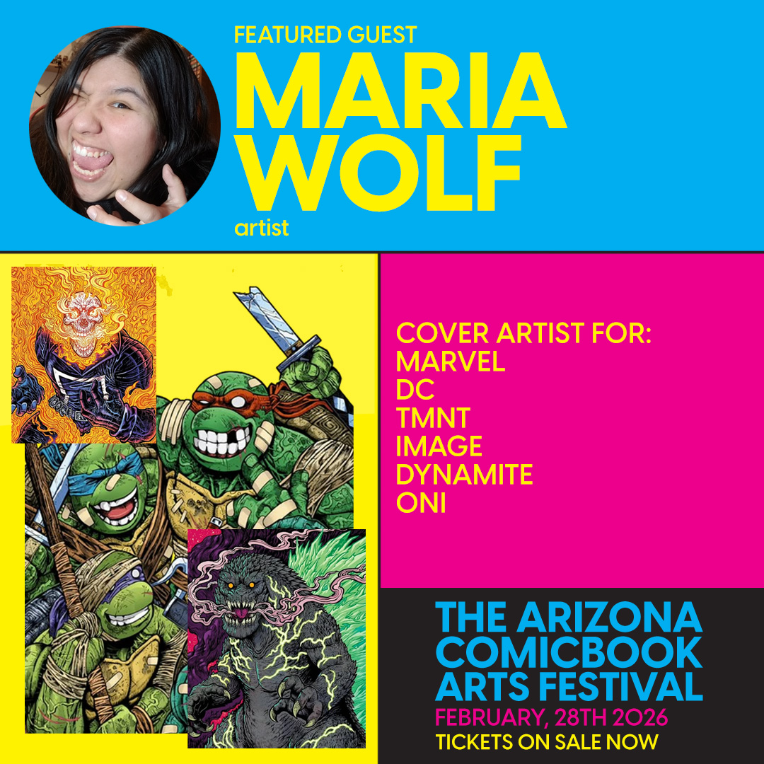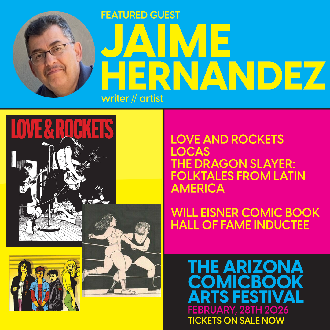 Jaime Hernandez is an Eisner Hall of Fame inductee and one of the creators of the seminal, and historic series, Love and Rockets. Phil Hester has worked on every major character for Marvel and DC and is a fan favorite creator! Maria Wolf‘s covers are highly coveted by collectors and she’s drawn covers for all of your favorite characters. Katie Skelly is a beloved, award winning indie creator who’s work has appeared in galleries throughout the country. We are thrilled to have these creators and many more at our 2026 show!